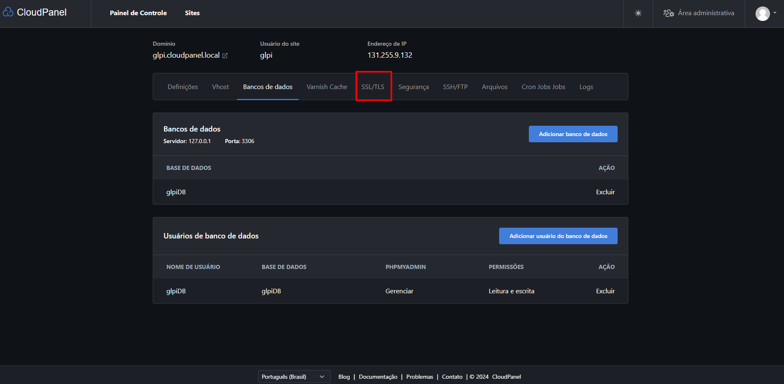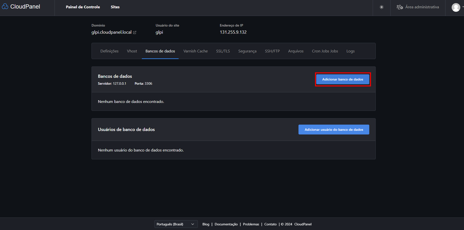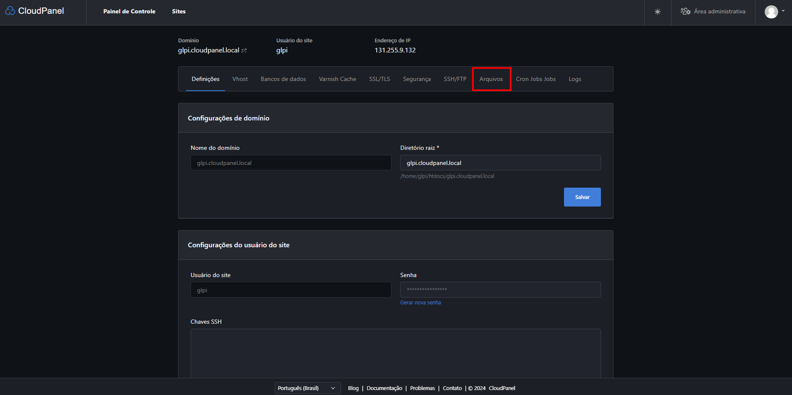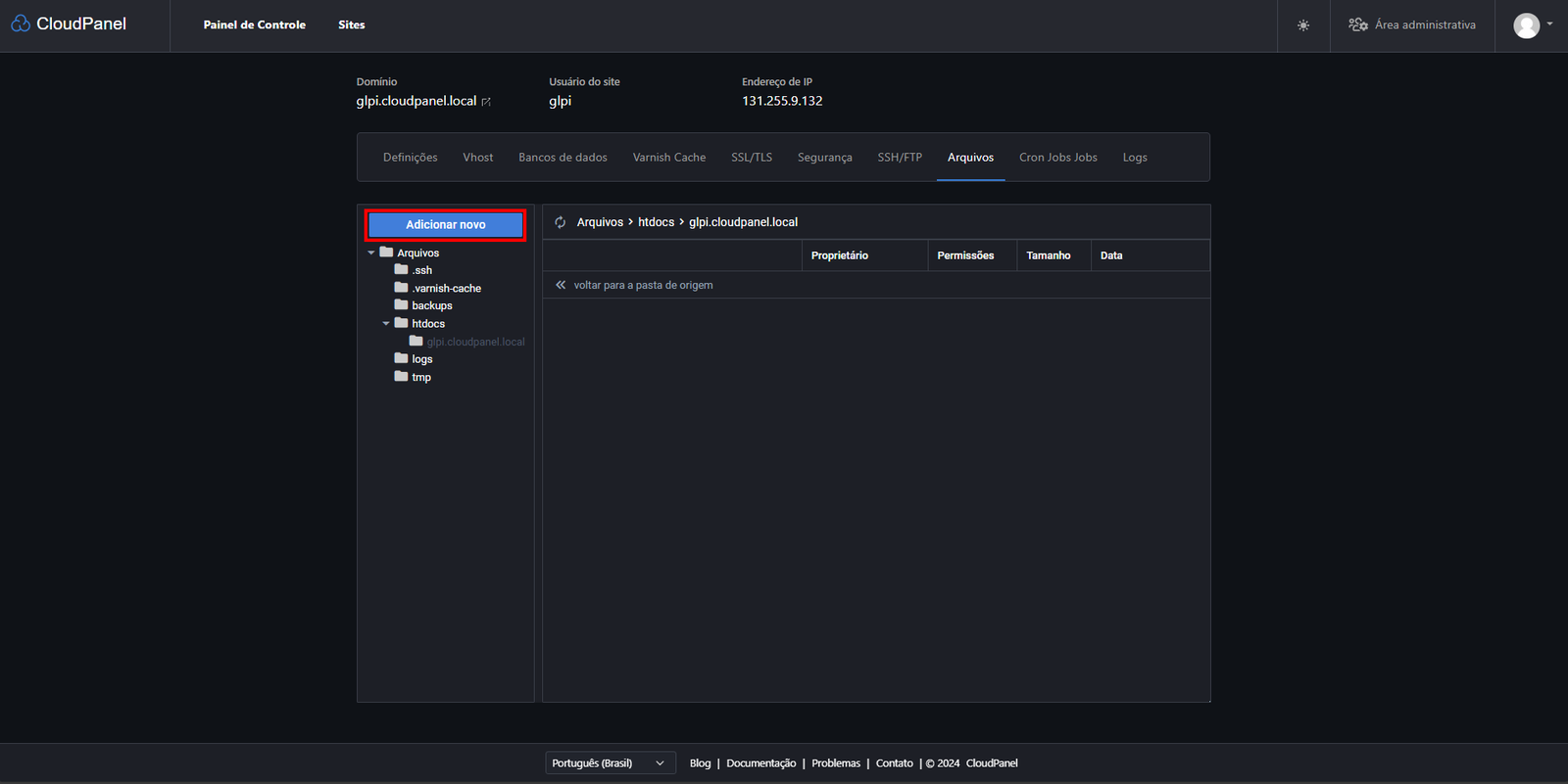 E se você quiser usar outro domínio? Tranquilo! É só trocar o "glpi.cloudpanel.local" pelo domínio que você preferir.