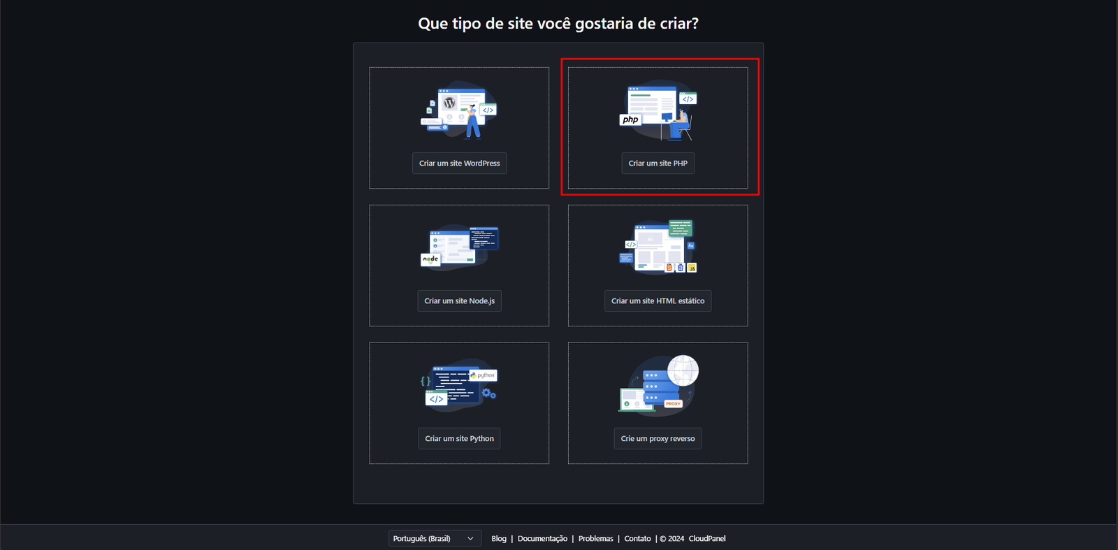 - O CloudPanel é tipo um bufê de opções para criar sites. Olha só o que temos no cardápio: