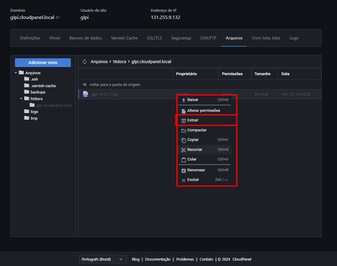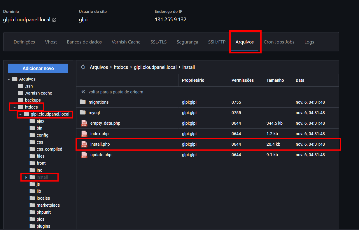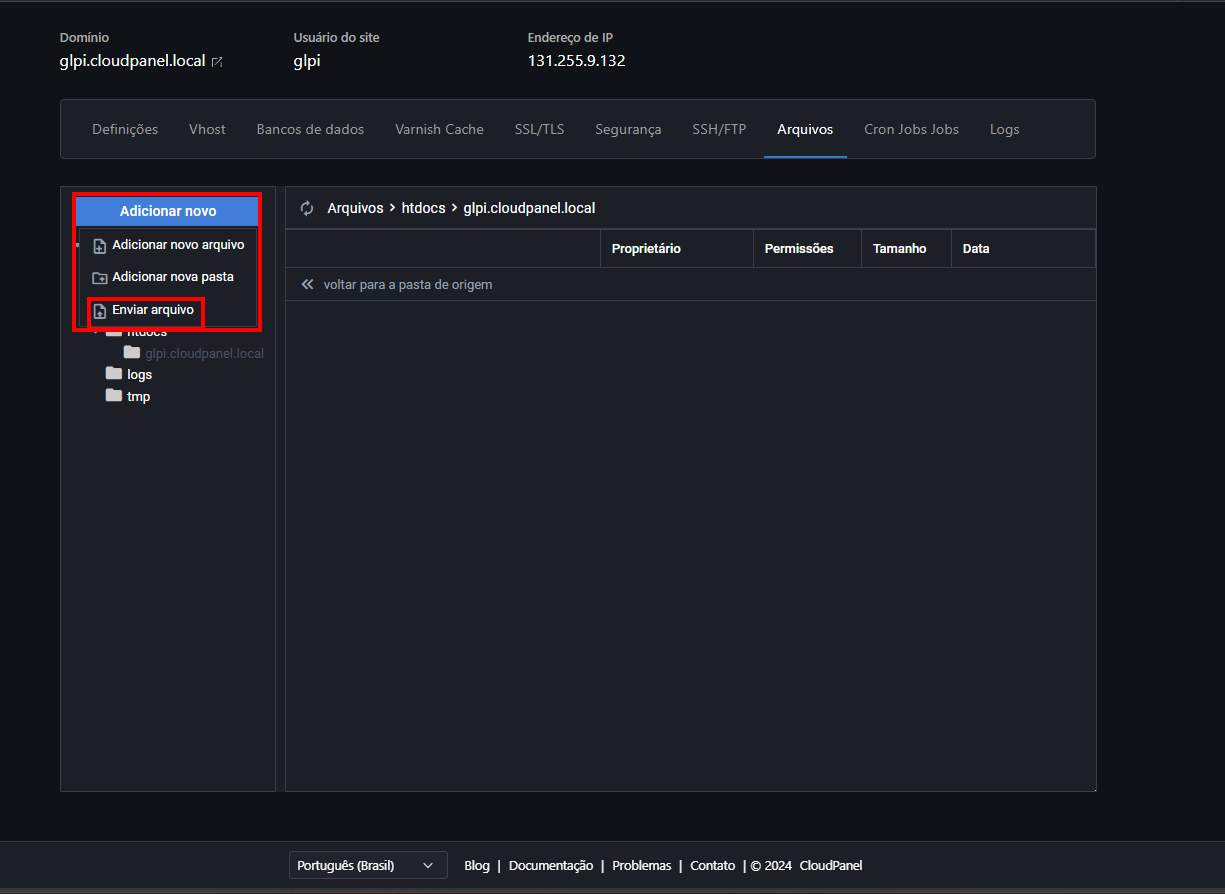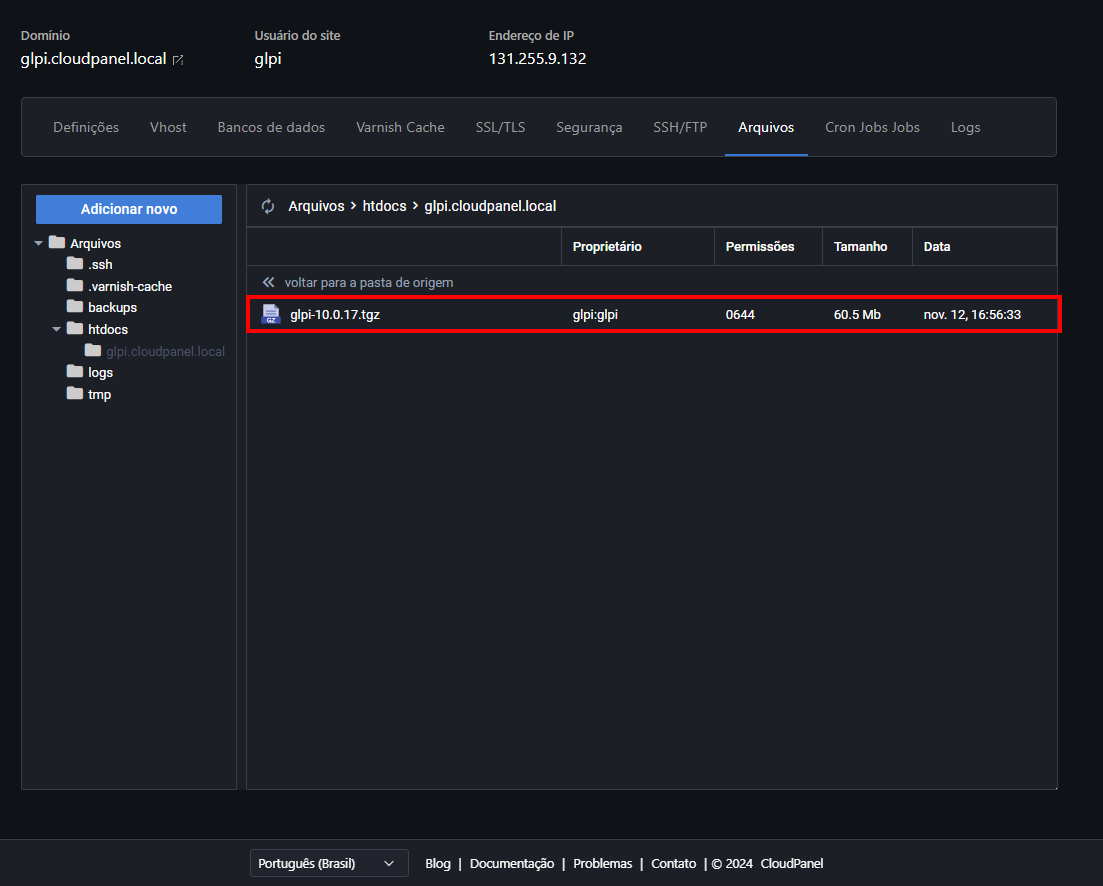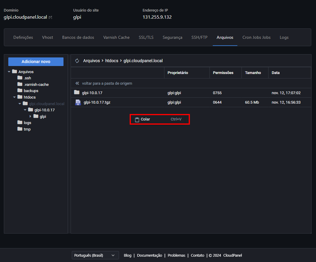 Como Instalar o GLPI no CloudPanel