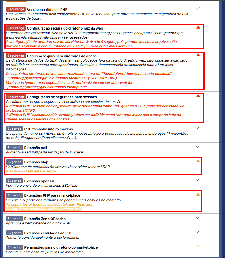 - A extensão "ldap" está ausente: LDAP é um protocolo de rede para gerenciar informações de diretório, usado principalmente para autenticação em ambientes corporativos.