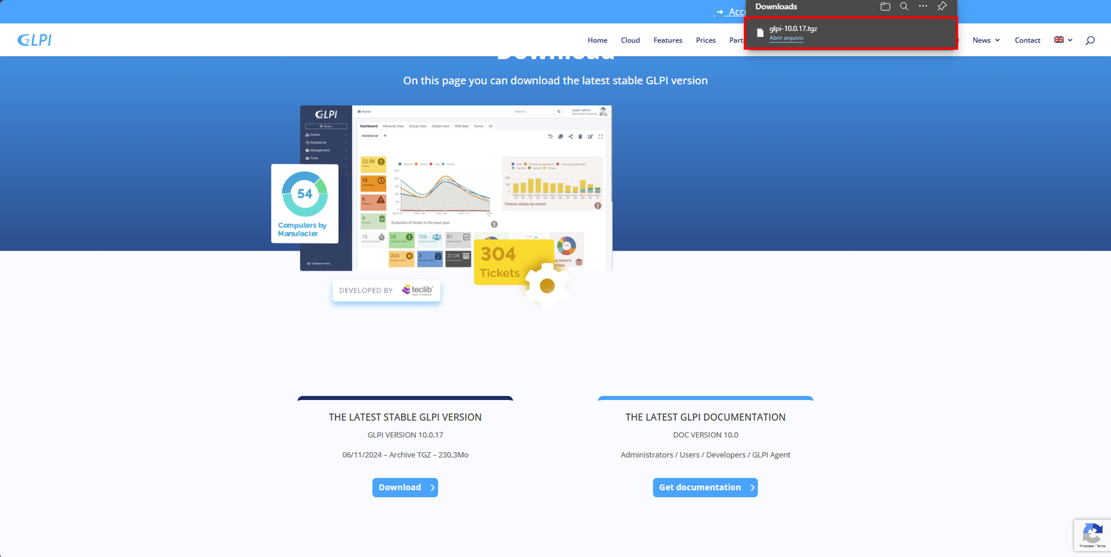 Para o GLPI, temos duas opções confiáveis de download: