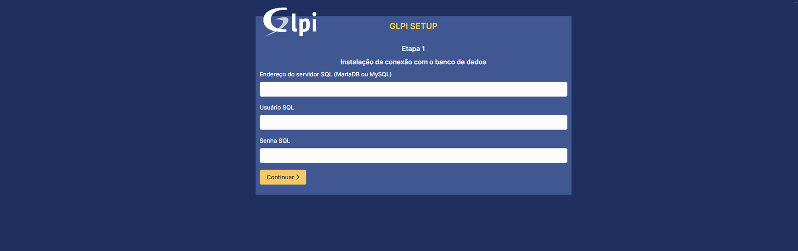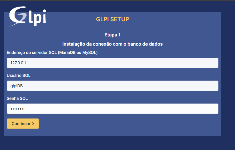 - E a "Senha SQL" vai ser aquela que a gente definiu antes: "GlpiDB@123".