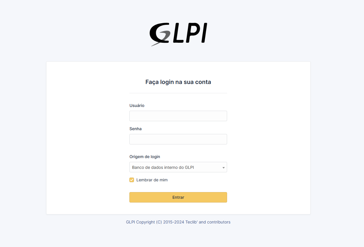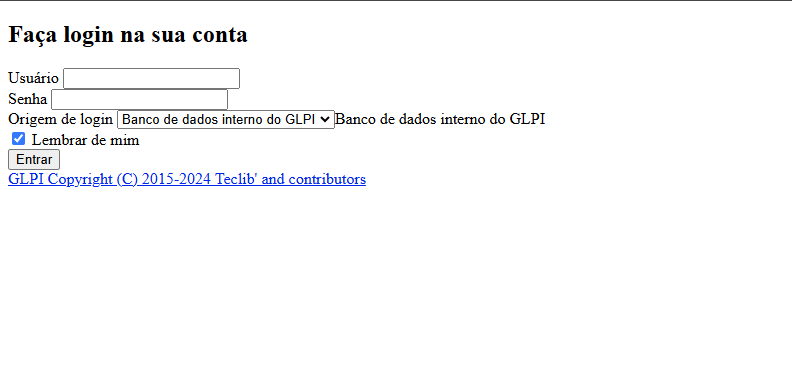 Beleza, galera! Depois dessa modificação, a página do GLPI vai carregar normalmente. Vai ficar assim: