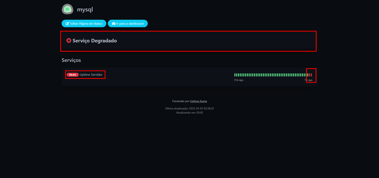O nosso objetivo é saber por meio de uma página de status personalizada se a falha de Uptime deixou nosso servidor de banco de dados inacessível;