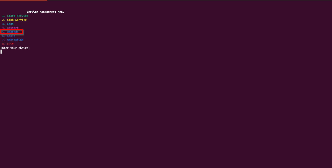 Em seguida selecione a opção 5 e o script irá iniciar o processo de atualização: